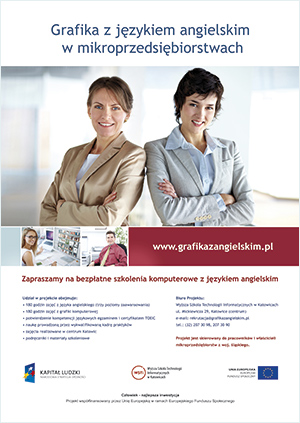 Projekt „Grafika z j. angielskim w mikroprzedsiębiorstwach” był realizowany w ramach Programu Operacyjnego Kapitał Ludzki: Priorytet VIII, Działanie 8.1, Poddziałanie 8.1.1 "Wspieranie rozwoju kwalifikacji zawodowych i doradztwo dla przedsiębiorstw".