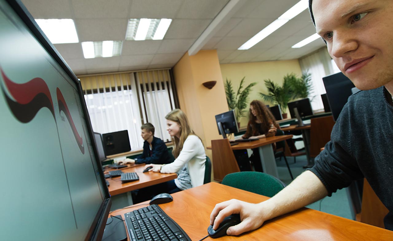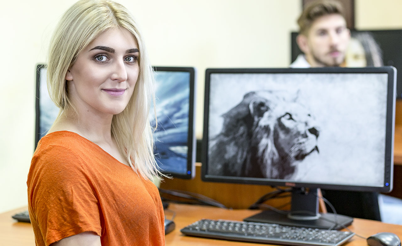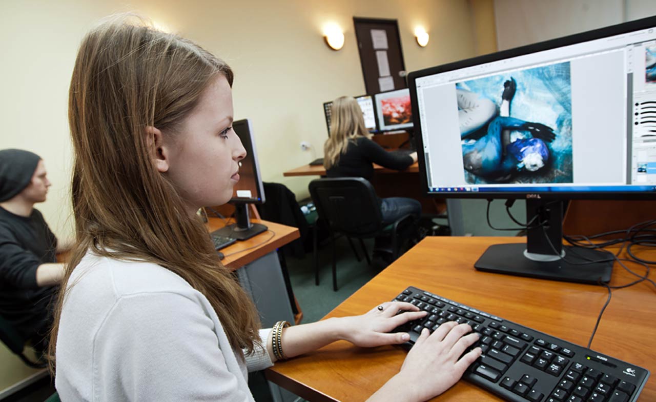 specjalistyczne pracownie komputerowe wyposażone w komputery klasy Dell oraz iMac z oprogramowaniem graficznym pakietu Adobe CS 5.5.,
