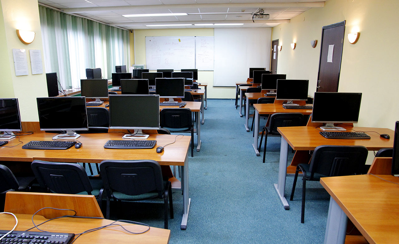 Wszystkie pracownie Uczelni są nowocześnie wyposażone. Prócz sal wykładowo-ćwiczeniowych i auli do użytku studentów oddane są m.in.